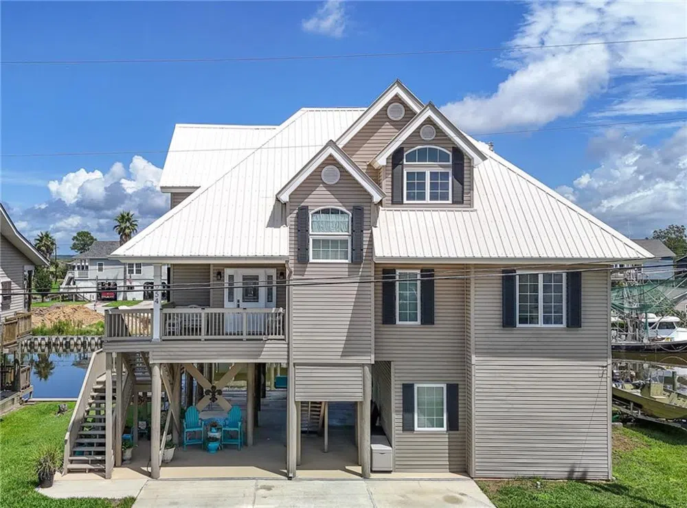 ENJOY BREATHTAKING VIEWS EVERY DAY! This stunning 3-bedroom, 2-bathroom home offers everything you need for the perfect waterfront living. The spacious kitchen boasts granite countertops, stainless steel appliances, gas cook-top, which flows into the breakfast and living area. The large primary suite and bathroom is a true retreat, located on the 2nd level. Wood flooring throughout, with tile in the bathrooms (no carpet). Enjoy the views and great outdoors from one of the front or two rear porches. Great for taking in the peaceful morning and evening breeze and beautiful sunrise & sunsets. The bottom level is great for outdoor entertaining or enjoying everyday life. Whether you're fishing, boating, or simply soaking in the views. A short boat ride leads you to Lake Pontchartrain, making this home a water lover's dream. Additional features include two large sheds /storage space, a metal roof, cargo lift, boat house and lift, providing all the amenities you need for easy living on the water. Flood policy is assumable. Don’t miss out on the chance to see this incredible property – schedule your private showing today!